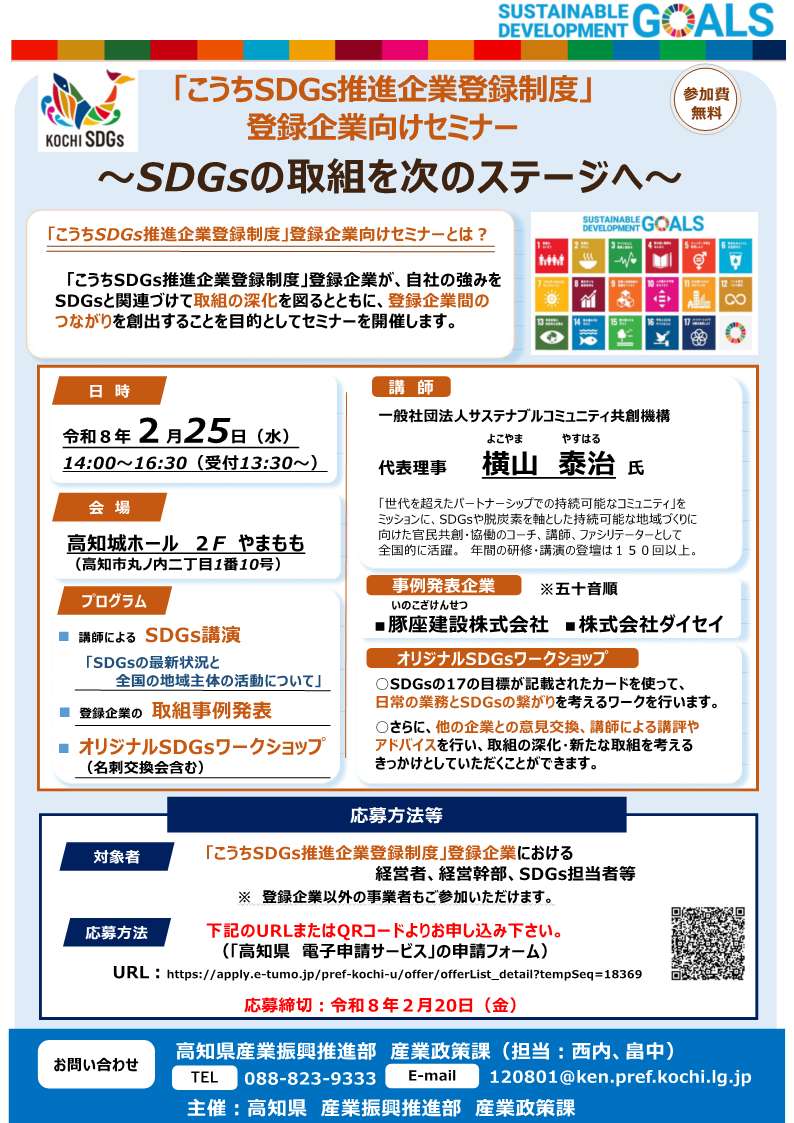 こうちSDGs推進企業登録制度』登録企業向けセミナー ~SDGsの取組を次のステージへ~